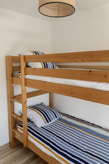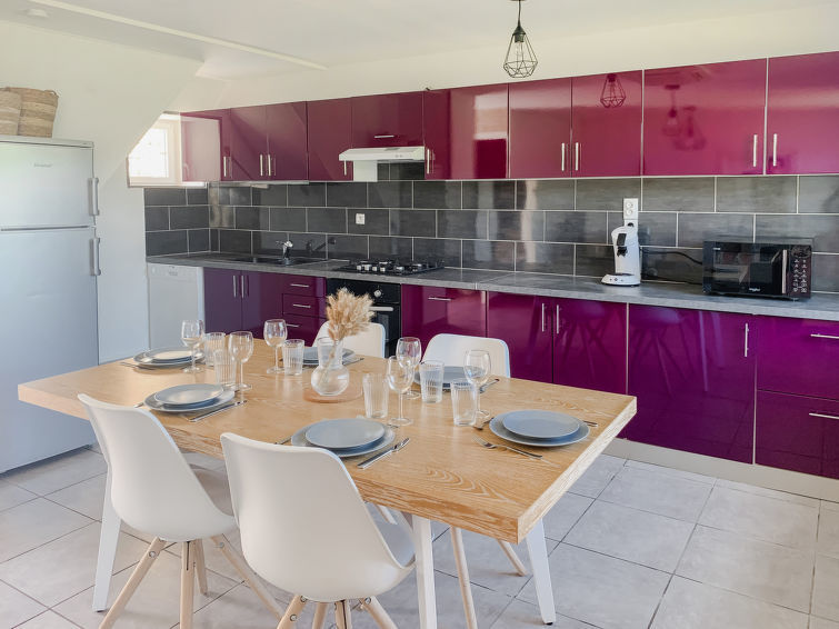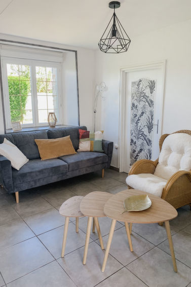 "Le Coquelicot", huis in een rij 4-kamers 70 m2. Comfortabel en smaakvol ingericht: woon-/eetkamer met elektrische verwarming met douche/WC. Open keuken (4-pits kookplaat, oven, afwasmachine, broodrooster, waterkoker, magnetron, elektrische koffiemachine) met TV. Douche/WC, dubbele wastafels. Bovenverdieping: 2 kamers, elke kamer heeft 1 2-pers bed (1 x 140 cm, lengte 190 cm), TV. 1 kamer met 1 x 2 stapelbedden (90 cm, lengte 190 cm). Barbecue, ligstoelen (6). Ter beschikking: wasmachine, droger (extra), strijkijzer. Internet (WiFi, gratis). 1 klein huisdier/hond toegestaan. Aanbod door een particulier volgens art. 155, IV van CGI.