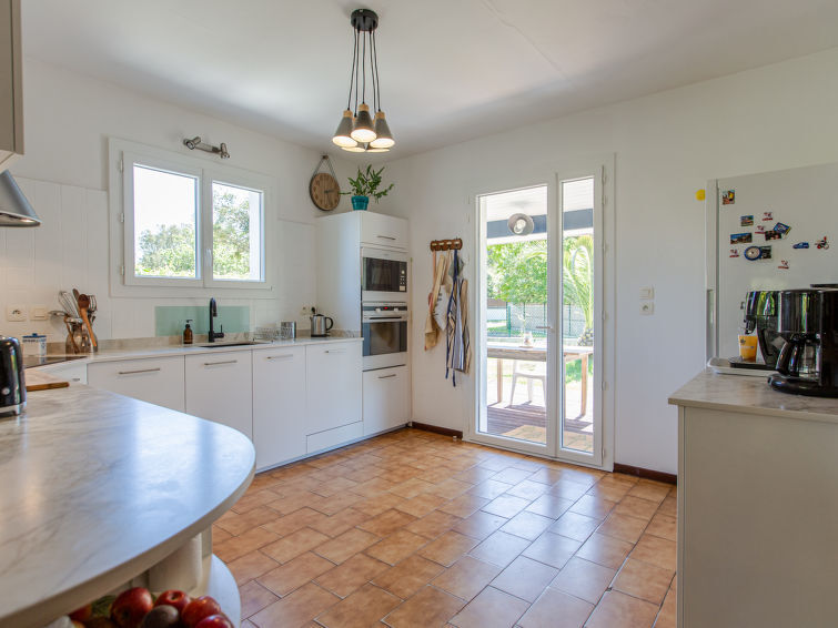 Huis 4-kamers 130 m2. Ruim en licht, comfortabel en mooi ingericht: groot woon-/eetkamer met eettafel en TV (Flatscreen TV). Uitgang naar het terras. 2 kamers, elke kamer heeft 1 2-pers bed (160 cm, lengte 190 cm). 1 kamer met 1 2-pers bed (160 cm, lengte 200 cm). Uitgang naar de tuin. Open keuken (oven, afwasmachine, 4 keramische glas kookplaten, broodrooster, waterkoker, magnetron, diepvriezer, elektrische koffiemachine). Douche/WC, aparte WC, dubbele wastafels. Air-conditioning, heteluchtverwarming. Groot terras 20 m2, overdekt. Terrasmeubelen, elektrische barbecue, ligstoelen (2). Ter beschikking: wasmachine, strijkijzer, kinderbed, haardroger. Internet (Internet (WiFi), gratis). Rookvrij huis. Rookmelders. Aanbod door een particulier volgens art. 155, IV van CGI. 40133000123DS