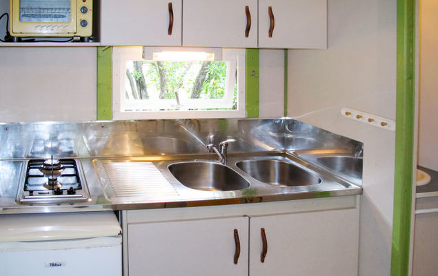 "Rico Plage (SNF145)", bungalow 3-kamers 23 m2. Doelmatig ingericht: woon-/eetkamer met eettafel en elektrische kachel. 1 kamer met 1 2-pers bed. 1 kamer met 2 bedden. Kookhoek (2 kookpitten (vlammen), elektrische koffiemachine). Douche, aparte WC. Terras overdekt. Terrasmeubelen. Ter beschikking: Internet (Internet (WiFi), gratis). Let op: geschikt voor families. Niet rokers woning.