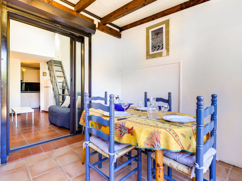 Huis in een rij 1-kamer 27 m2 op 2 verdiepingen. Doelmatig ingericht: woon-/eetkamer met veranda met 1 2-pers divanbed (1 x 140 cm, lengte 190 cm), TV (Flatscreen TV). Uitgang naar het terras. Kookhoek (4-pits kookplaat, oven, magnetron). Bad/WC. Elektrische verwarming, air-conditioning. Bovenverdieping: galerij met dakraam met 1 2-pers bed (1 x 140 cm, lengte 190 cm). Terras 10 m2, op het oosten gelegen. Terrasmeubelen, barbecue (verrijdbaar). Ter beschikking: wasmachine. Internet (WiFi, gratis). Parkeerplaats nr. 325. Woning aan de straatzijde. Maximaal 1 huisdier/hond toegestaan. Rookmelders. In plaats van een afgesloten slaapkamer bevinden sommige slaapgedeeltes zich in een open ruimte (galerij, nis, etc.). Aanbod door een particulier volgens art. 155, IV van CGI.