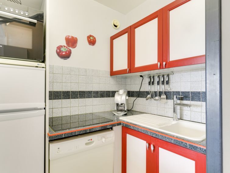 Appartement 2-kamers 30 m2 op de 1e verdieping. Comfortabel ingericht: woon-/eetkamer met 1 2-pers divanbed (140 cm, lengte 190 cm), TV (Flatscreen TV). Uitgang naar het terras. 1 kamer met schuifdeur met 1 2-pers bed (140 cm, lengte 190 cm). Kookhoek (afwasmachine, 4 inductiekookplaten, diepvriezer, elektrische koffiemachine, combimagnetron). Badkamer, aparte WC. Air-conditioning. Terras 10 m2, op het zuiden gelegen. Terrasmeubelen. Uitzicht op het zwembad en de haven. Ter beschikking: Internet (Internet (WiFi), extra). Rookmelders, geen lift.