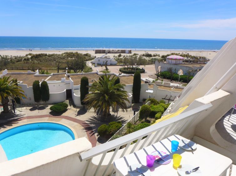 Residentie "La Calypso", van 4 verdiepingen. In de wijk La Motte du Couchant, 1 km van het centrum, 50 m van zee, 40 m van het strand, directe toegang tot het strand. Voor medegebruik: openluchtzwembad (seizoensgebonden beschikbaarheid: 22.Jun. - 30.Aug. openingstijden zwembad: 15:00-20:00). Winkelcentrum 150 m, restaurant, bushalte 400 m, treinstation "Montpellier" 25 km, zandstrand 20 m, overdekt zwembad 3 km, thermaalbad "Thalasso Spa" 2.5 km. Jachthaven 900 m, golfterrein (18 holes) 3.5 km, zeilschool 500 m, tennis 3 km, manege 2 km. Attracties in de buurt: Le Seaquarium du Grau Du Roi 10 km, Les Remparts d'Aigues Mortes 12 km, Les Saintes Maries de la Mer 40 km. Geen lift. Vliegveld in de buurt 20 km van het huis. Vergelijkbare accommodaties kunnen worden geboekt.