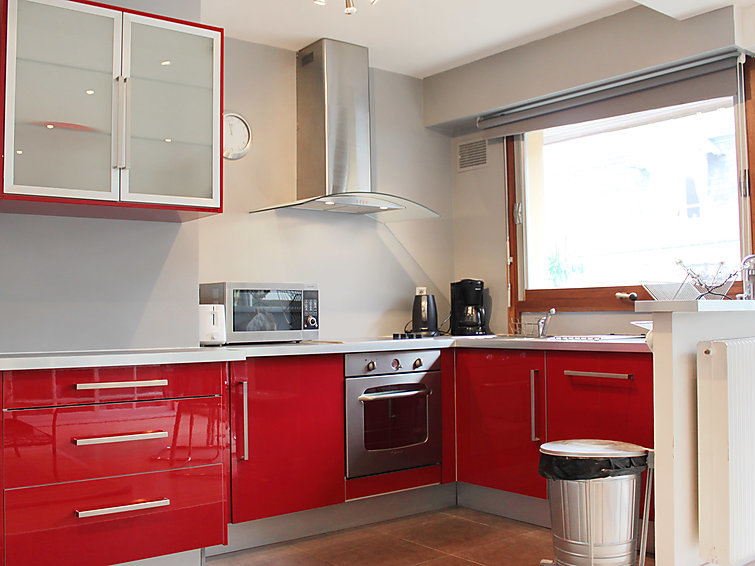 Deauville: Residentie "Les Cigognes". In het centrum van de stad, 500 m van zee, 500 m van het strand. In het complex: lift. (4 treden). Winkel 50 m, supermarkt 300 m, restaurant 50 m, bushalte "Yacht Club - Marché" 500 m, treinstation "Deauville-Trouville" 750 m, overdekt zwembad 700 m, thermaalbad "Deauville" 700 m. Golfterrein (18 holes) 3.5 km, tennis 450 m, manege 450 m. Attracties in de buurt: Centre International Deauville - CID 500 m, Hippodrome Deauville-La Touques 600 m, Mémorial de Caen 50 km, Plage du débarquement d'Arromanches 86 km. De sleuteloverdracht vindt plaats bij het agentschap Interhome in Deauville.