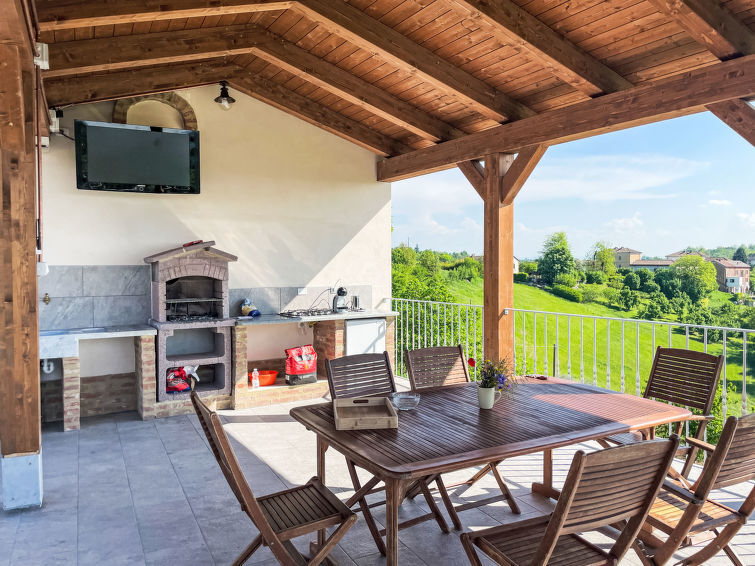 Gezellig Huis met 3 woningen van 2 verdiepingen, omgeven door velden en wijngaarden. Buiten de plaats, 2 km van het centrum van Portacomaro, rustige, zonnige ligging op een heuvel. Voor medegebruik: wild terrein 1.500 m2 (omheind) met gazon en bomen, openluchtzwembad (11 x 4 m, 150 cm diepte, seizoensgebonden beschikbaarheid: 01.Mei. - 15.Okt.). Buitendouche, terras, tuinmeubelen, parkeerplaats bij het huis op het terrein. Levensmiddelenwinkel 2 km, supermarkt 5 km, restaurant 1 km, bakkerij 2 km, bushalte 1.6 km. Attracties in de buurt: Asti 12 km, Turin 50 km, Alba 35 km. Auto noodzakelijk. Eigenaar woont in apart huisgedeelte. De eigenaar heeft een hond.