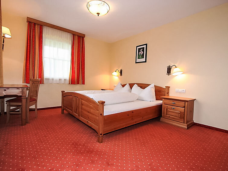 Altenmarkt: Op een toplocatie, in het hart van het sportgebied Amade met meer dan 850 km skipistes, bevindt zich dit fraai comfortabel flatgebouw "Hofresidenz". In de plaats, 1 km van het centrum van Altenmarkt, rustige, zonnige ligging, 3 km van het meer, 3 km van het skigebied. Voor medegebruik: terrein, weide, ligweide. Kinderspeelplaats. In het huis: receptie, restaurant, ontbijtruimte, sauna, fitnessruimte, bergruimte voor fietsen, zonneterras, berging voor ski's, centrale verwarming. Broodjesservice, ontbijt en half pension op aanvraag (extra). Parkeerplaats bij het huis. Levensmiddelenwinkel 100 m, restaurant 10 m, bushalte 100 m, treinstation "Altenmarkt" 2 km, thermaalbad "Therme Amadé" 150 m, meer (zwemmen) "Eben" 3 km. Golfterrein (18 holes) 5 km, tennis, manege 500 m, sportcentrum 1 km, kabelbaan 2 km, skilift 2 km, skibushalte 20 m, skischool 2 km, langlaufloipe 50 m, ijsbaan 500 m. Bekende skigebieden kunnen gemakkelijk worden bereikt: Flachau-Wagrain-St.Johann 5 km, Altenmarkt-Radstadt 3 km, Zauchensee-Flachauwinkel-Kleinarl 10 km. Gratis skibus. Gratis skibus naar het skigebied Flachau-Wagrain-St.Johann en Zauchensee-Flachauwinkel-Kleinarl. De afgebeelde foto is slechts een voorbeeld. Vergelijkbare accommodaties kunnen worden geboekt. In het huis bevindt zich een gezellig restaurant met open keuken en een heerlijk zonneterras met uitzicht op het mooie berglandschap. 1e Klas fitnessruimte met meer dan 40 "Technogym" toestellen en mooi saunacomplex met Finse sauna, stoombad en eigen rustruimte, nodigen uit tot ontspanning. De fitnessruimte is van 7-19 uur geopend voor kinderen vanaf 14 jaar.