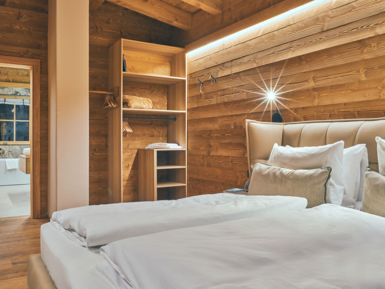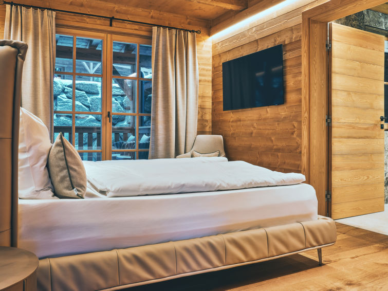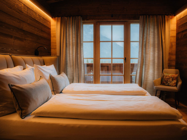 "Sissis green Chalets", chalet 16-kamers. Luxueus en met veel hout ingericht: hal. 4 2-pers. kamers, elke kamer heeft douche/WC, TV en Digitale TV (Flatscreen TV). Groot woonkeuken (afwasmachine, 4 inductiekookplaten, broodrooster, waterkoker, magnetron, elektrische koffiemachine, kookeiland) met eettafel, open haard, TV en Digitale TV (Flatscreen TV), elektrische rolluiken. Uitgang naar het terras. Bovenverdieping: 8 2-pers. kamers, elke kamer heeft bad/douche/WC, TV en Digitale TV (Flatscreen TV). Uitgang naar het balkon. 4 groot terrassen 25 m2. Terrasmeubelen, barbecue, ligstoelen. Mooi uitzicht op de bergen. Ter beschikking: wasmachine, sauna, haardroger. Internet (WiFi, gratis). Parkeerplaats. Rookvrij huis.